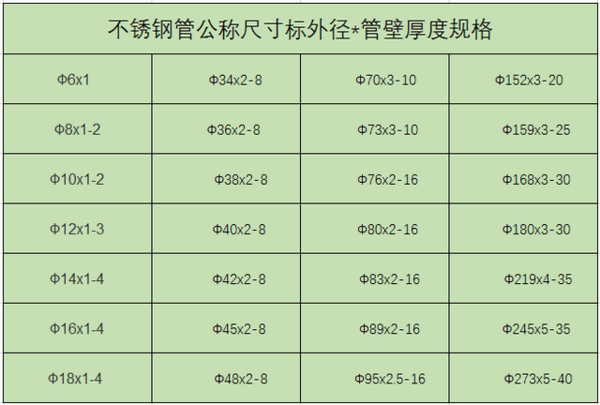 不銹鋼管公稱尺寸標外徑*管壁厚度規格如下: